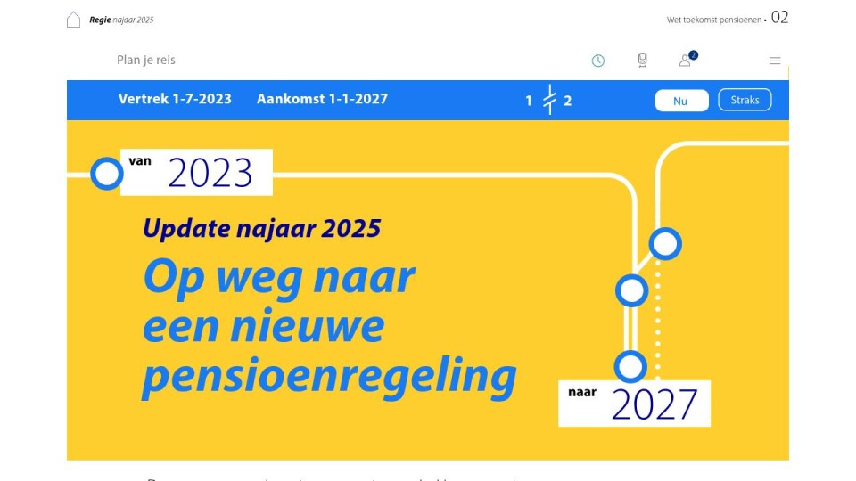 De overgang naar het nieuwe pensioenstelsel komt steeds dichterbij. Achter de schermen werken we hard aan alle voorbereidingen zodat jij als deelnemer straks goed geïnformeerd bent. In dit artikel praten we je bij over de laatste ontwikkelingen en hoe we samen met collega’s toewerken naar 1 januari 2027.